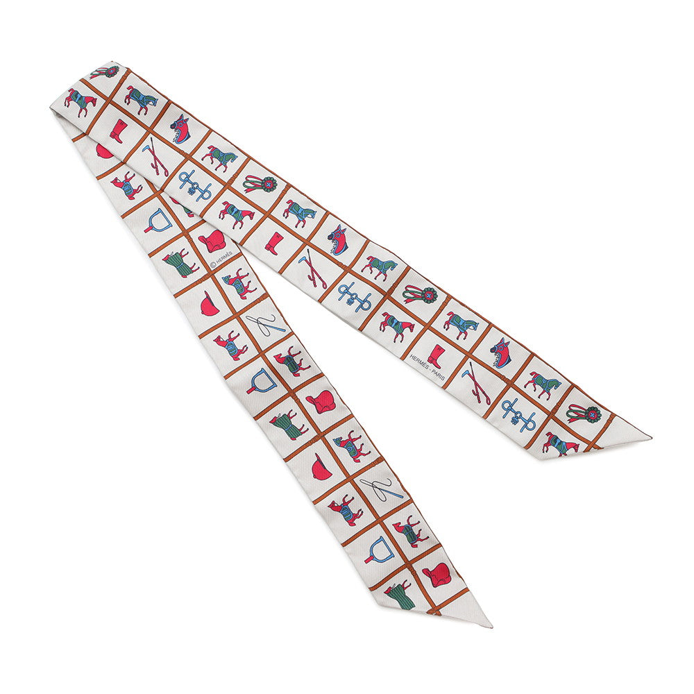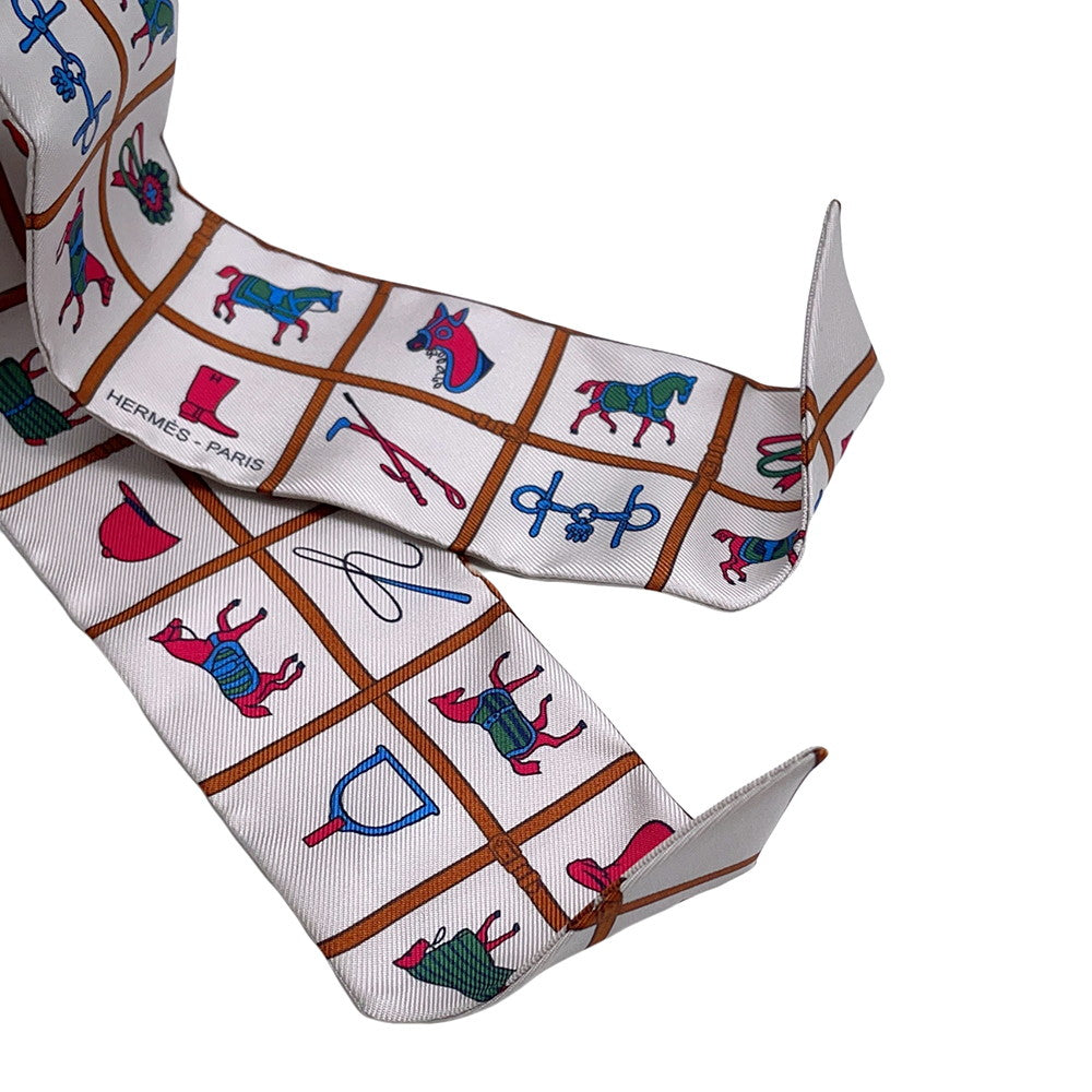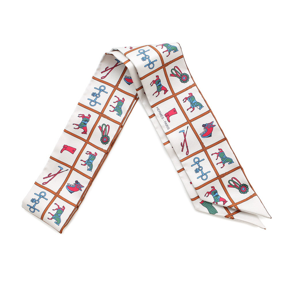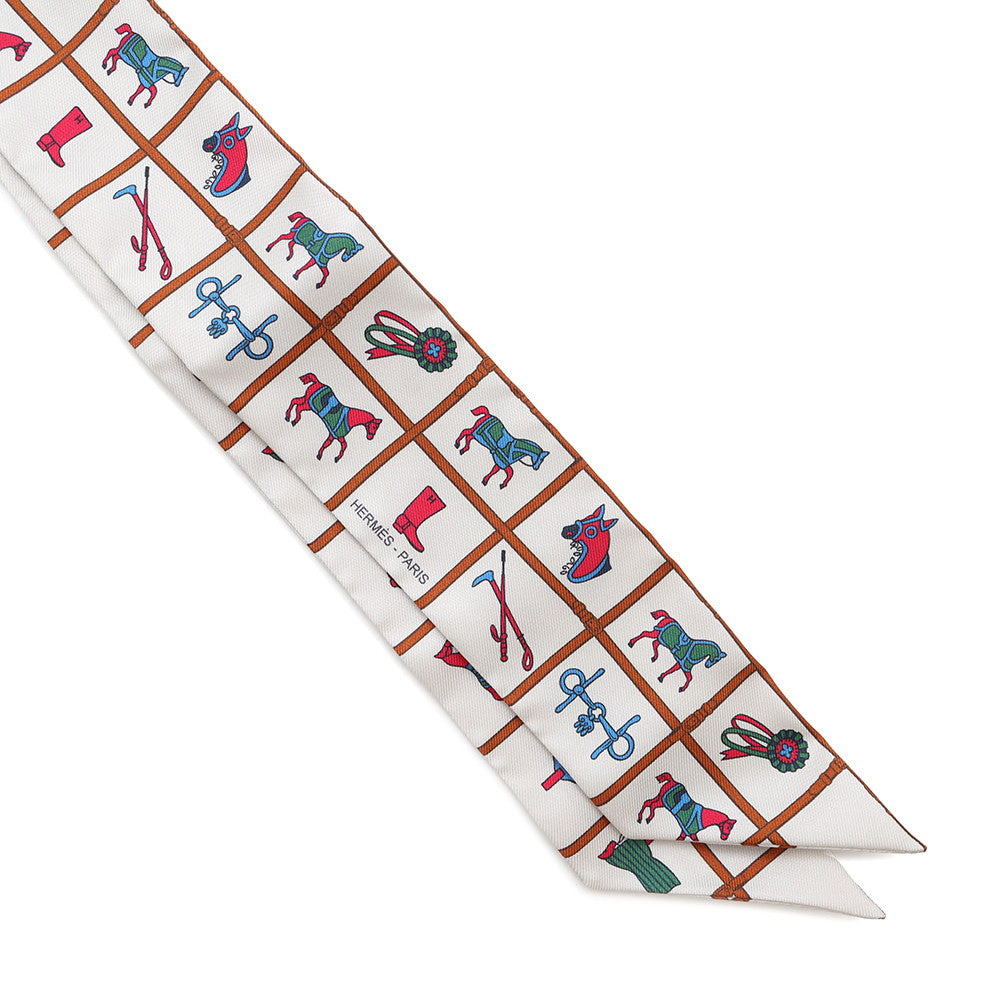 • Load image into Gallery viewer, HERMES Twilly Couvertures et Tenues de Jour Cream/Blanc/RoseH061356S Silk100%