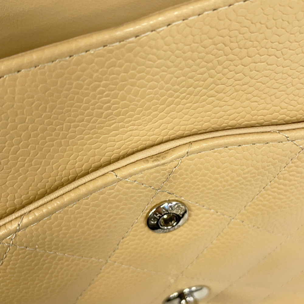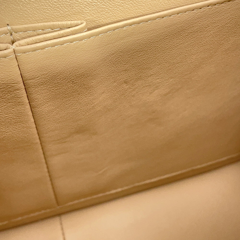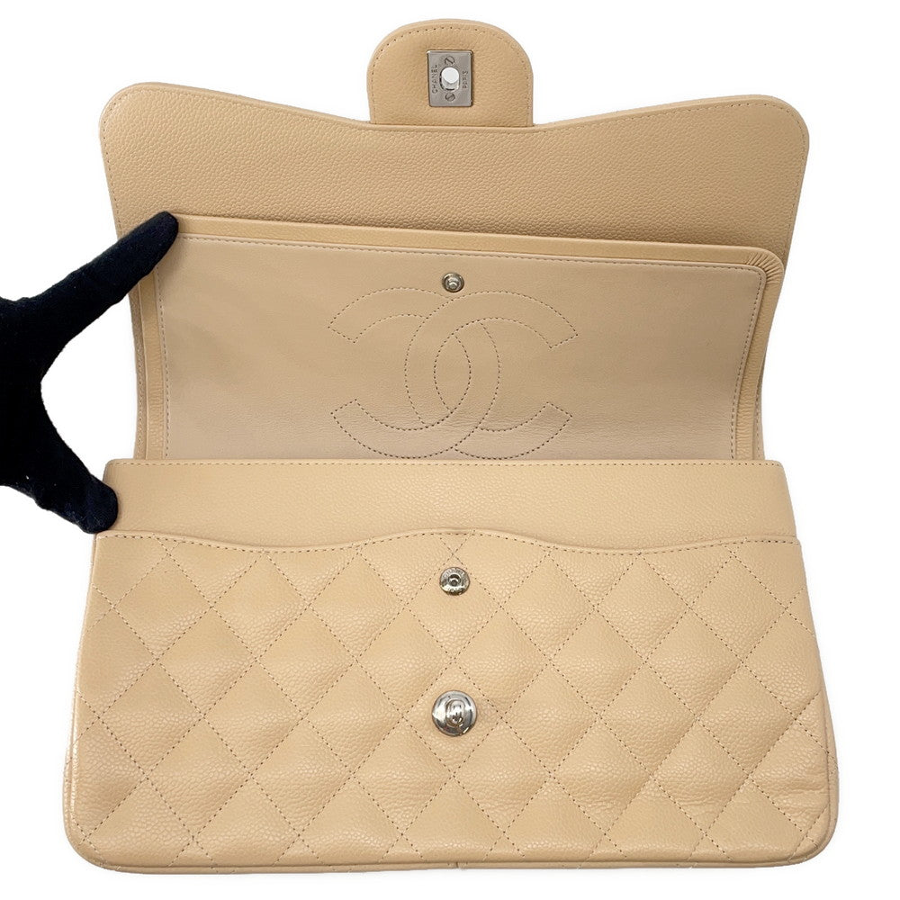 CHANEL Matelasse W Flap ChainShoulder Bag BeigeA58600 Caviar Leather Size 30