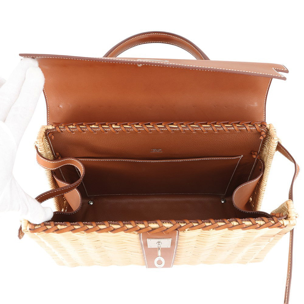 HERMES Kelly Picnic Natural/Fauve Rattan Barenia Leather Size 35