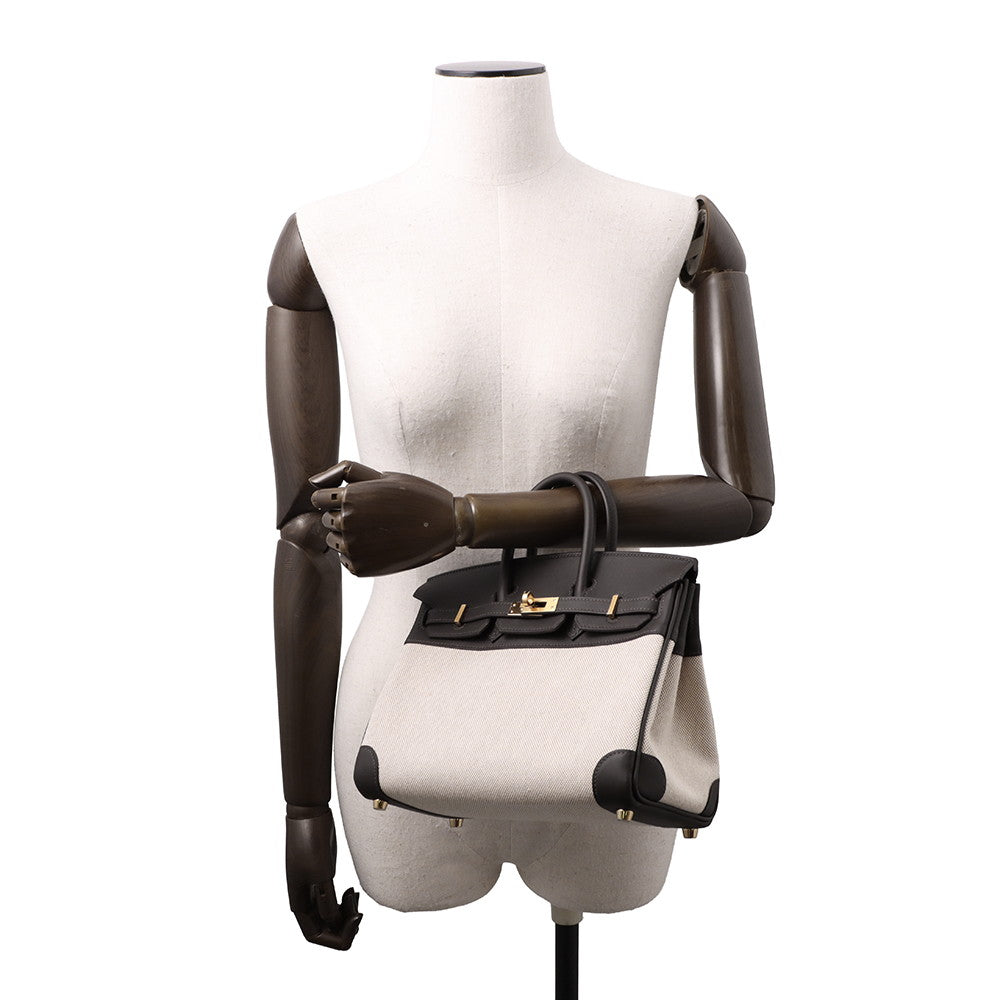 HERMES Birkin Ecru/Baybrunn Toile H Swift Leather Size 25