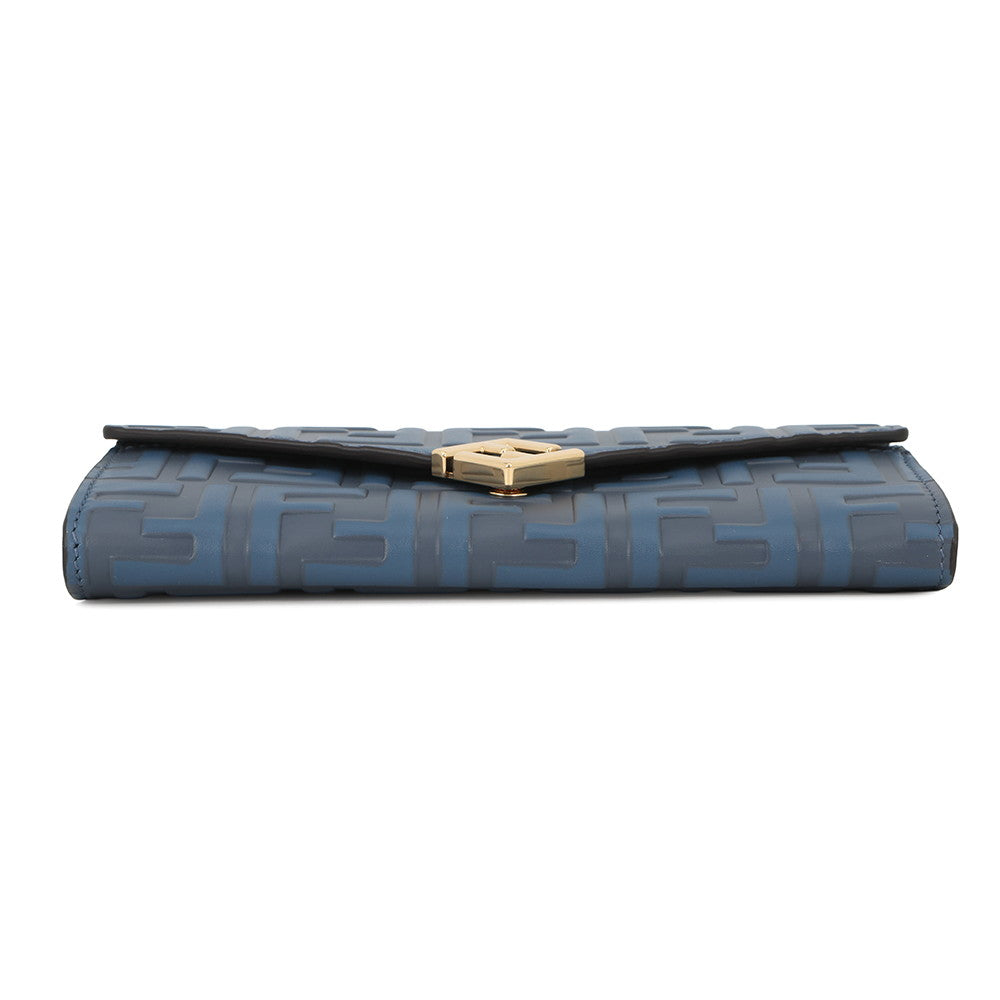 FENDI Zucca Pattern F is FENDI Chain Long Wallet Blue8M0365 Leather