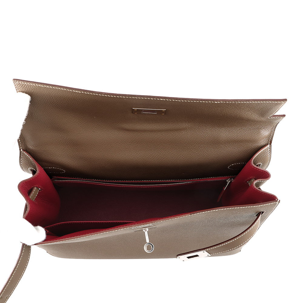 HERMES Kelly Sellier Etoupe/Ruby Epsom Size 35