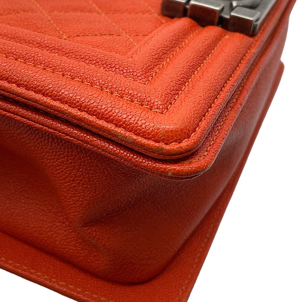 CHANEL Boy Chanel ChainShoulder Bag OrangeA67085 Caviar Leather Size Small