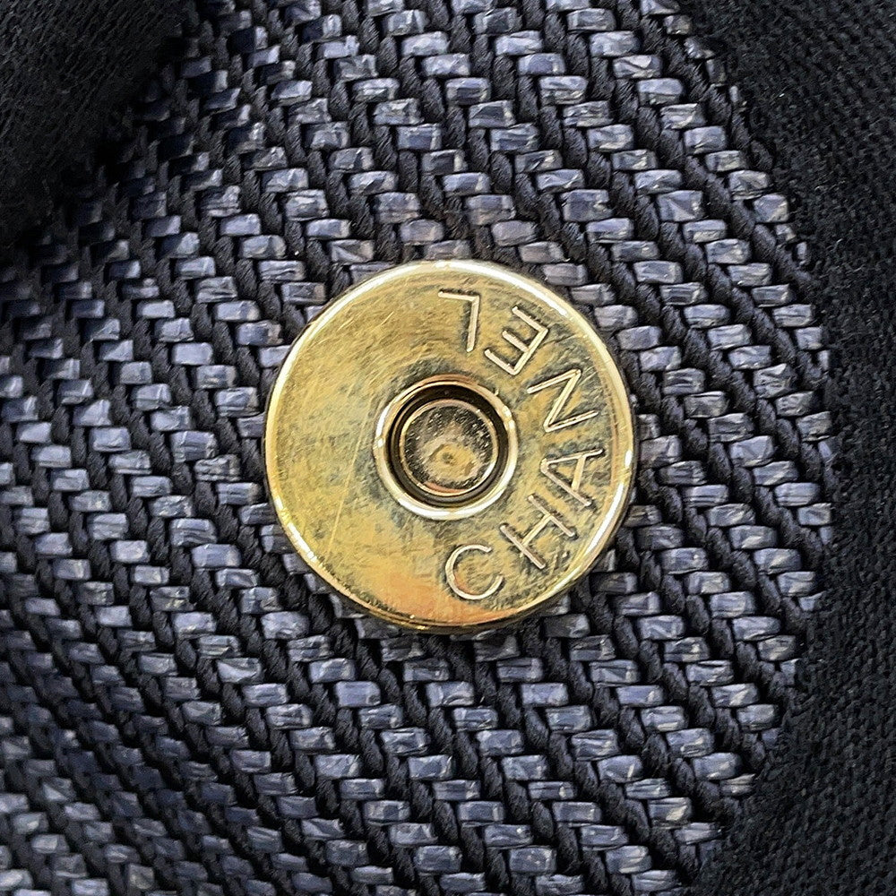 CHANEL Deauville shopping bag Navy/BlackA93786 Raffia Leather Size GM