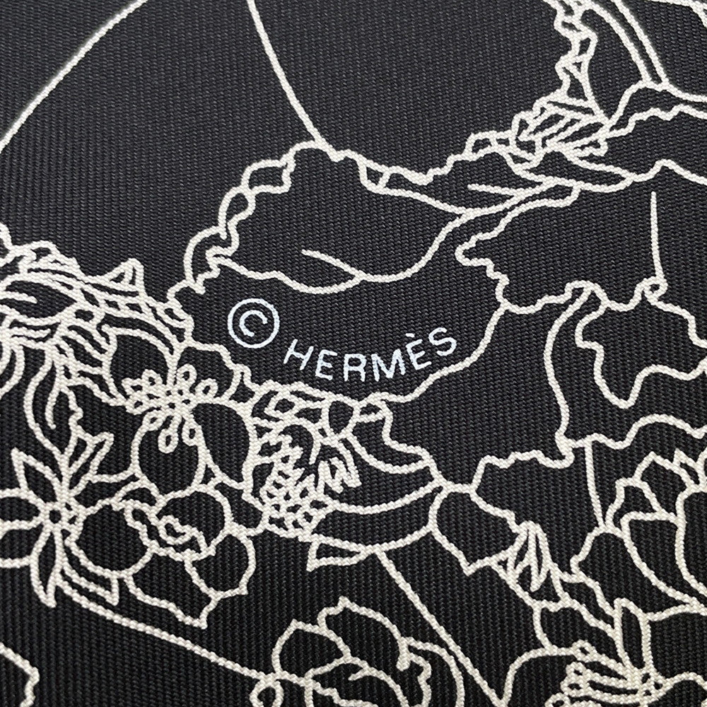 HERMES Carre 90 ROBE LEGERE Size 90 Black/White Silk100%
