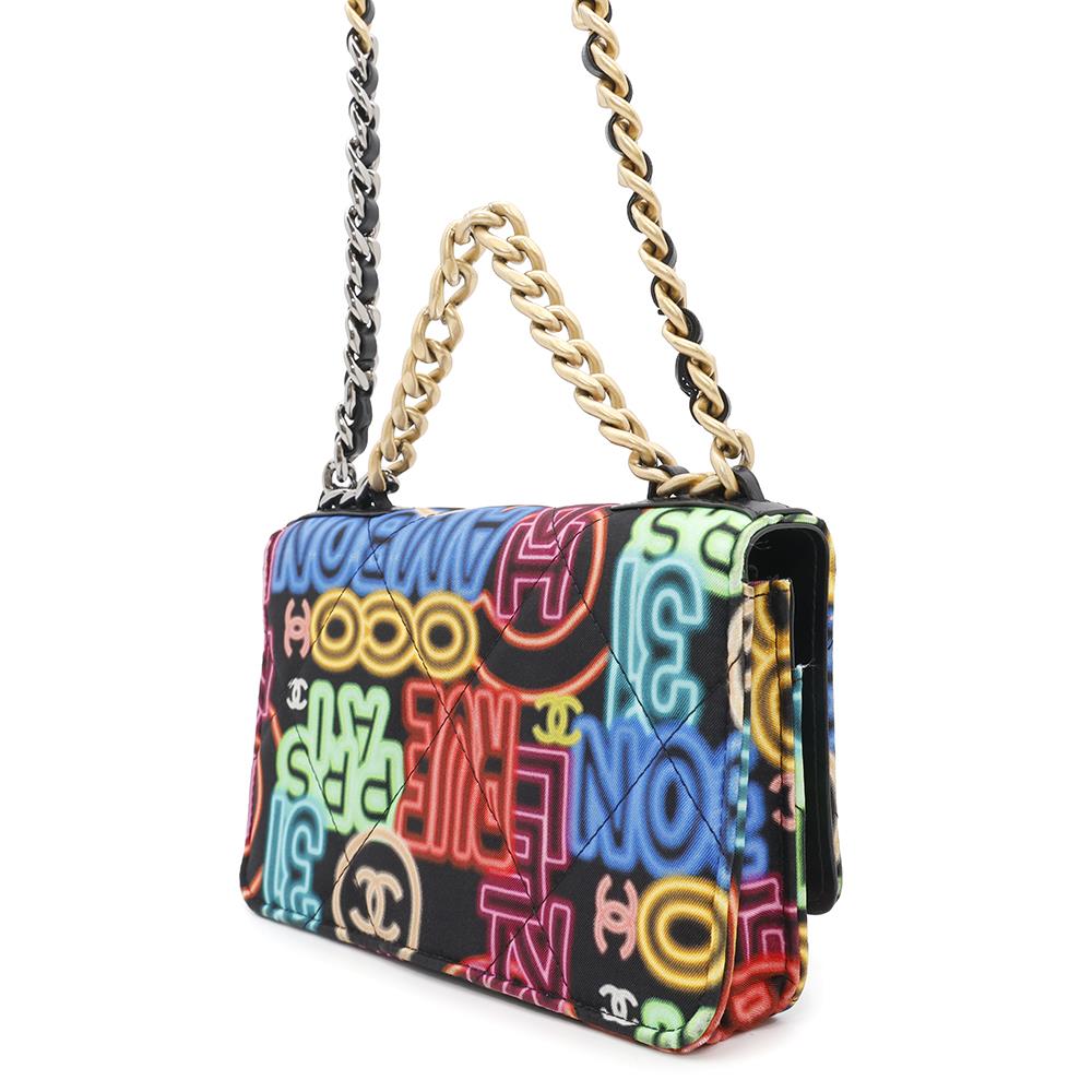 CHANEL ★CHANEL19 Chain Wallet Neon MulticolorAP0957 Printed Fabric/Leather