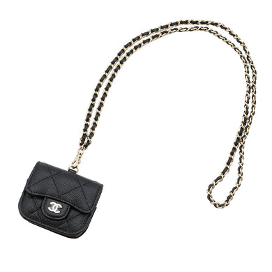 • CHANEL Matelasse ChainShoulder AirpodsCase BlackAP1739 Caviar Leather