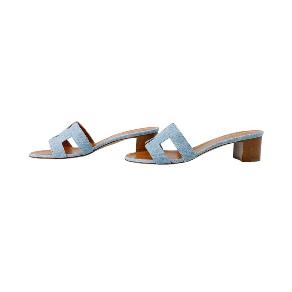 HERMES Oasis Blue Claire Denim Leather Size 37.5