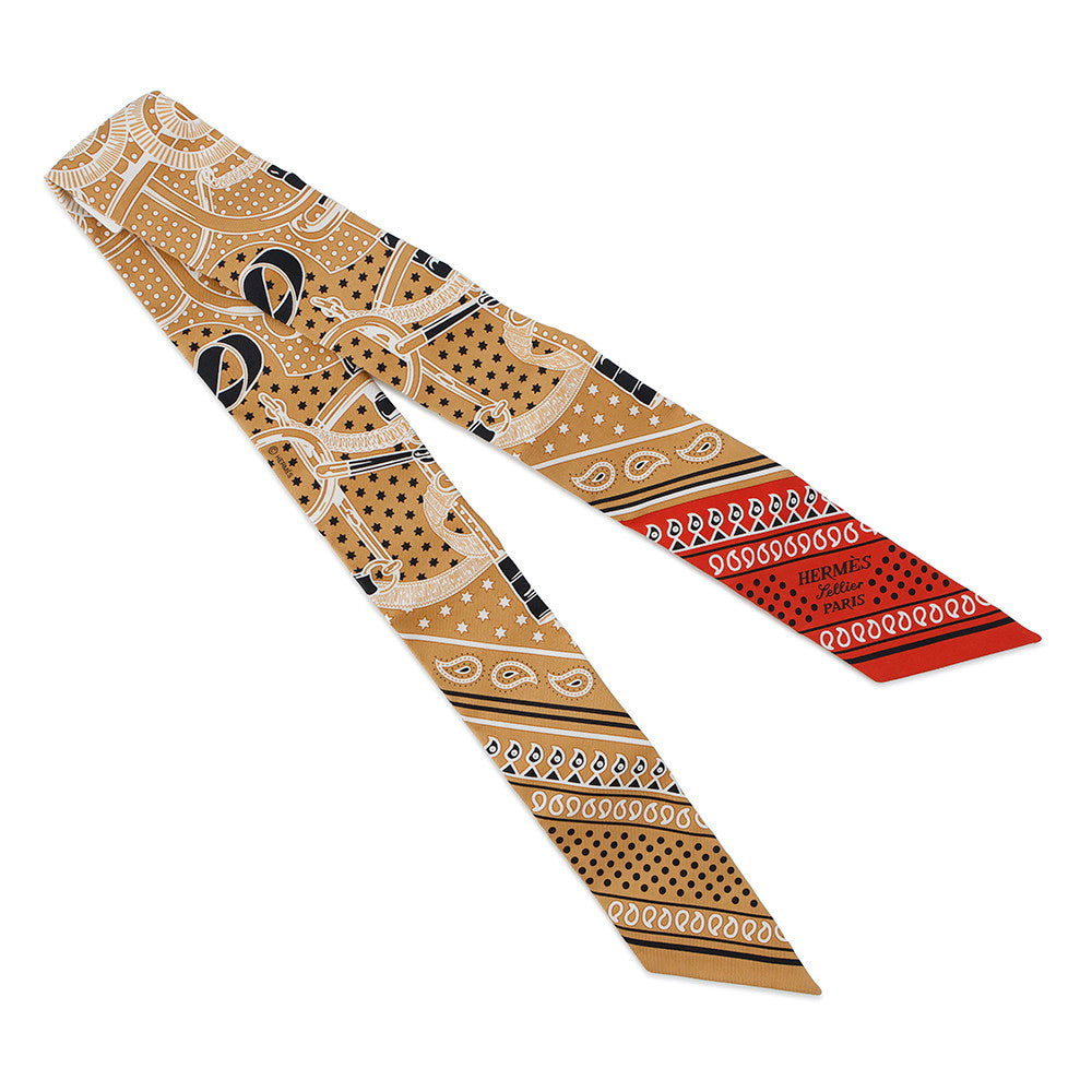 HERMES Twilly Apron Doll Rouge/Beige Doll/BlancH062978S Silk100%
