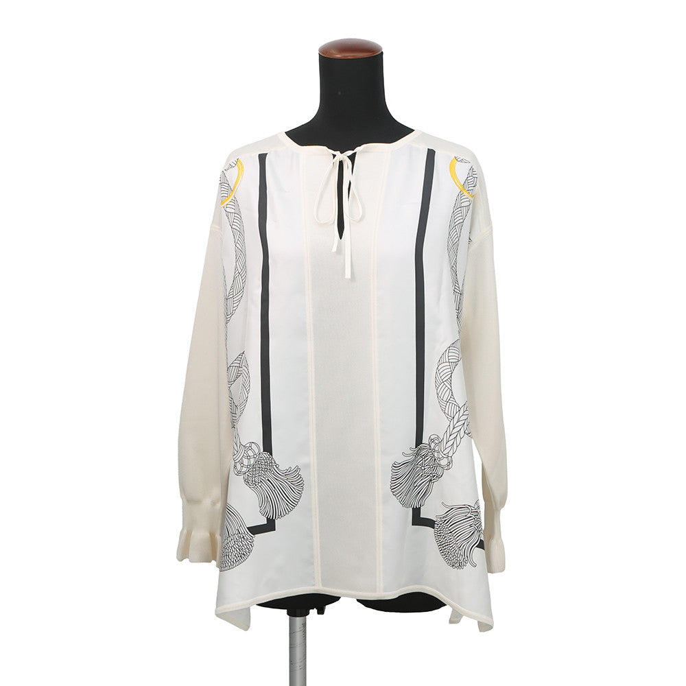 HERMES Blouse Palefroi Remix Size 34 Blanc NarkleH5H0628DLTL34 Silk100%