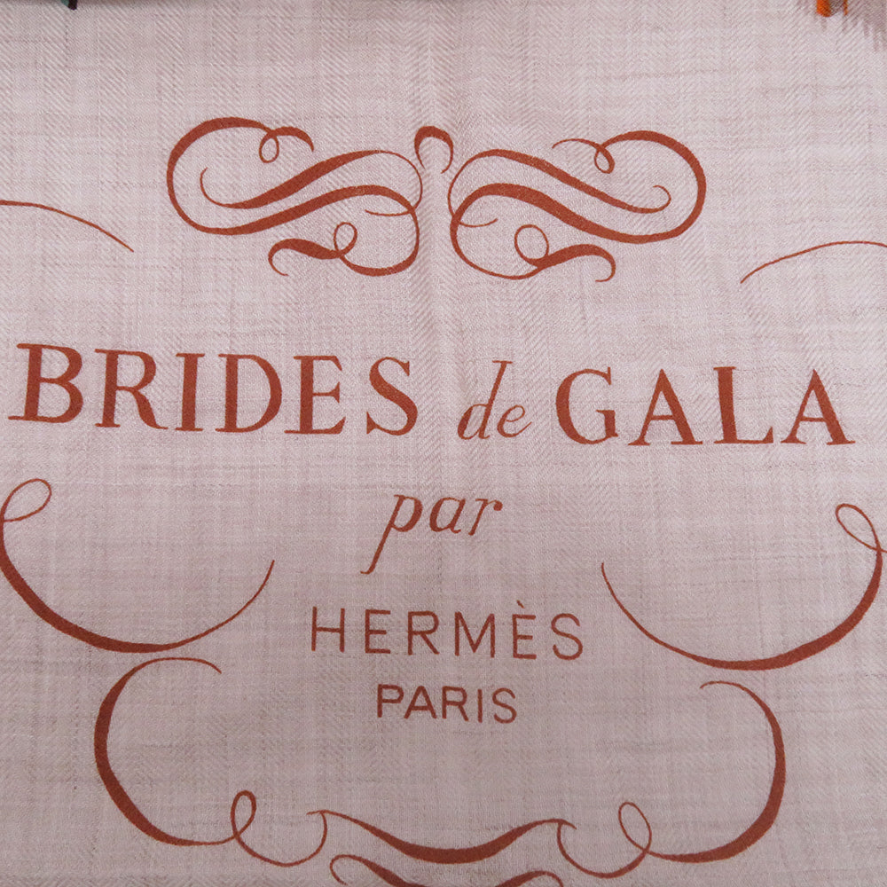 HERMES Giant Square Brides de Gala Applique Pique Size 140 Jaune/Beige/Natural Cashmere70% Silk30%