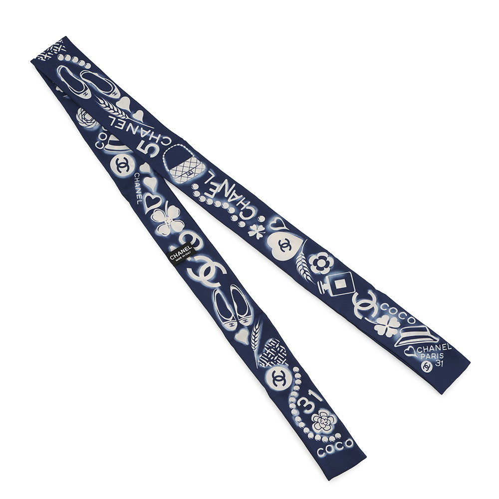 CHANEL Scarf CC Logo Icon motif Navy/White Silk100%