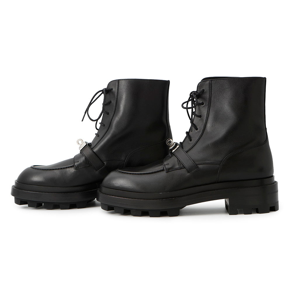 HERMES Kelly Buckle Short Boots Fiacre Black Leather Size 42