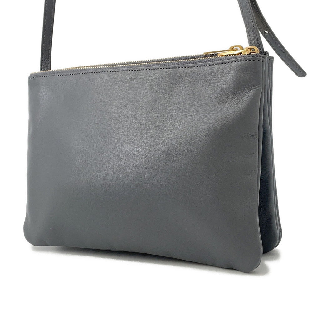 CELINE Trio Shoulder Bag Gray171453 Leather Size Large