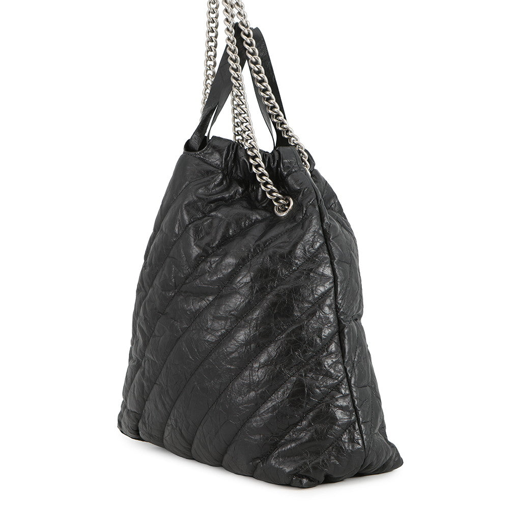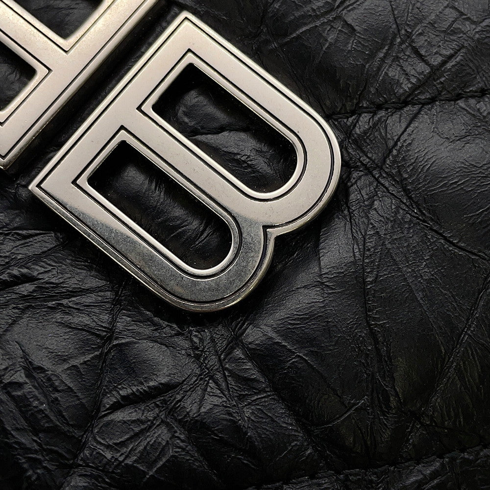 BALENCIAGA BB Logo Crushed Quilted ChainShoulder Bag Black742941 Crushed Calf Leather Size Medium