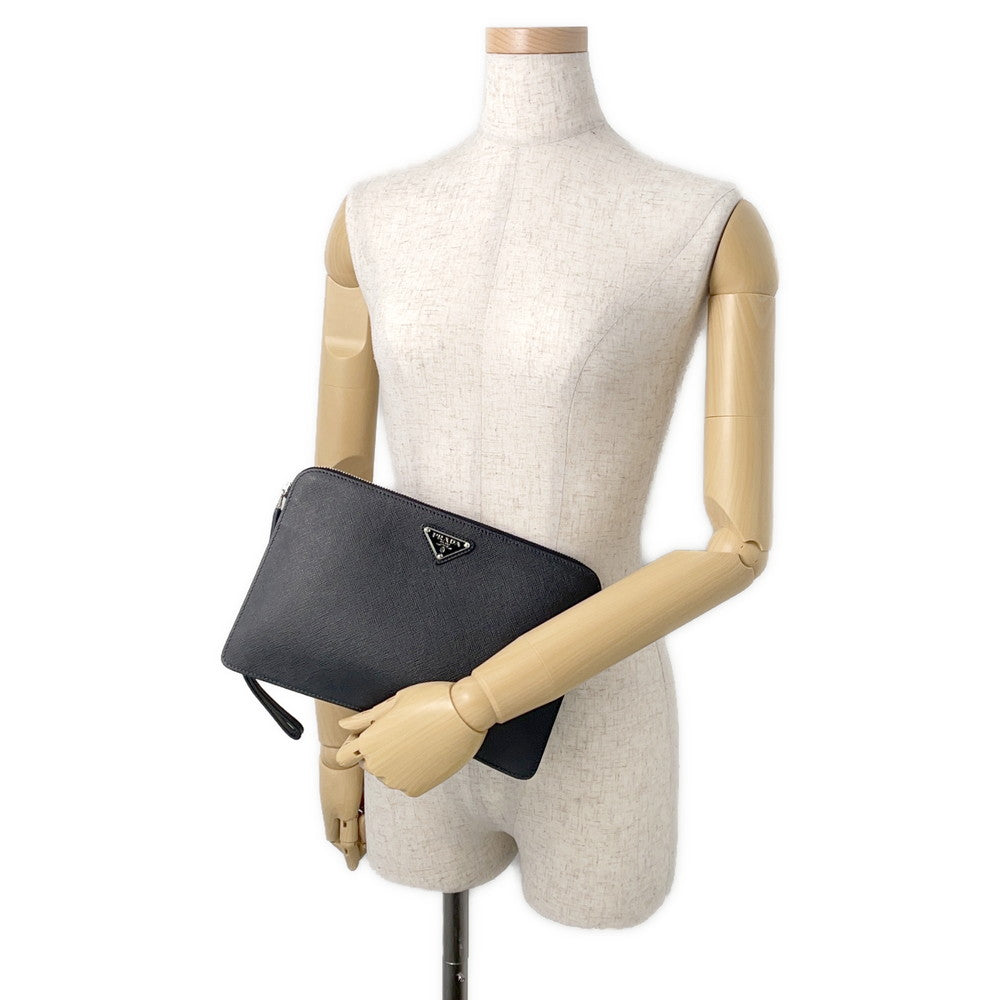 PRADA Saffiano Leather Clutch Bag Black2VF056 Leather