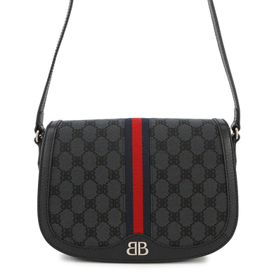 BALENCIAGA GUCCI × BALENCIAGA The Hacker Project Ophidia Shoulder Bag Black680121 Canvas Leather