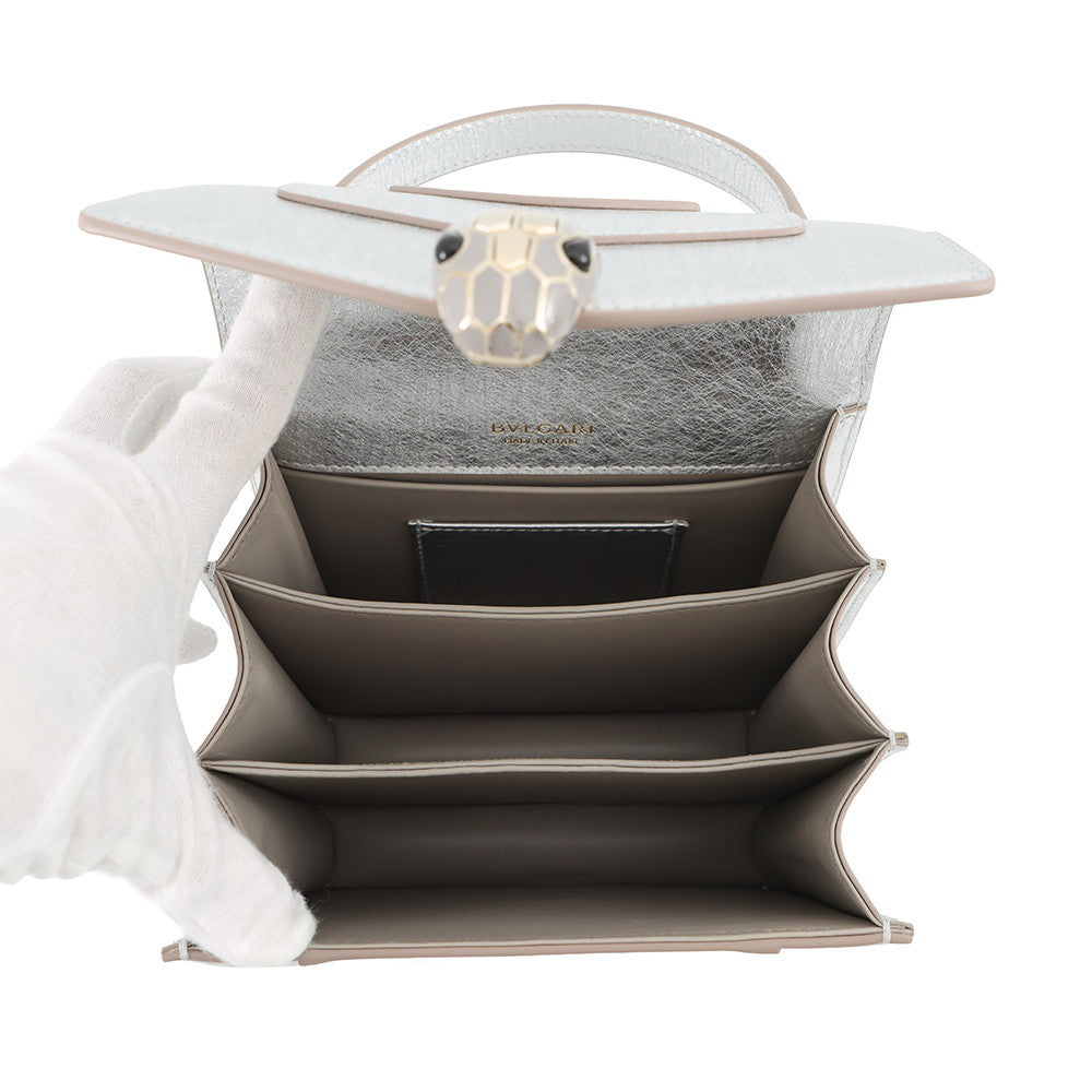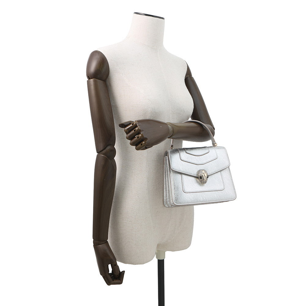 BVLGARI Serpenti Forever 2-Way Shoulder Bag Silver293217 Calf Leather Size S
