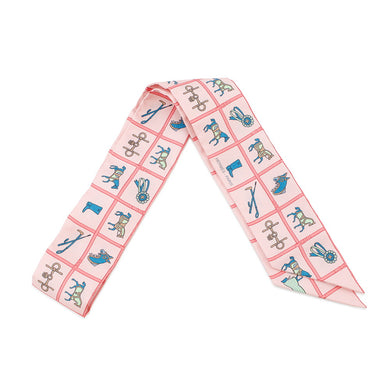 HERMES Twilly "Ex Libris Marble" Rose/Blanc/BlueH064066S Silk100%供应商 HERMES