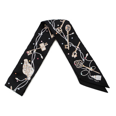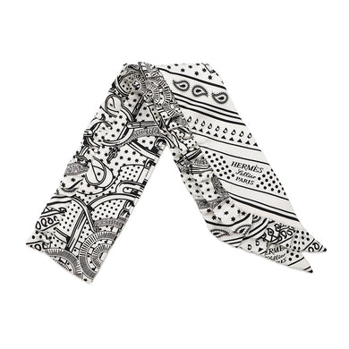 HERMES Twilly Frill Apron Doll Bandana Black/White Silk100%供应商 HERMES