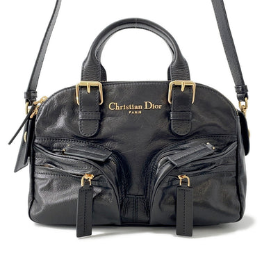 Dior Lady Dior 2WAY Handbag Black/Red Leather Size Mini