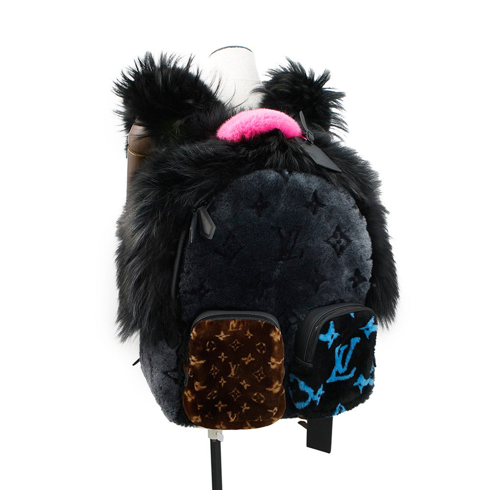 LOUIS VUITTON Automne Hiver 2020 Multi-Fur Backpack NoirM56852 Monogram Fur