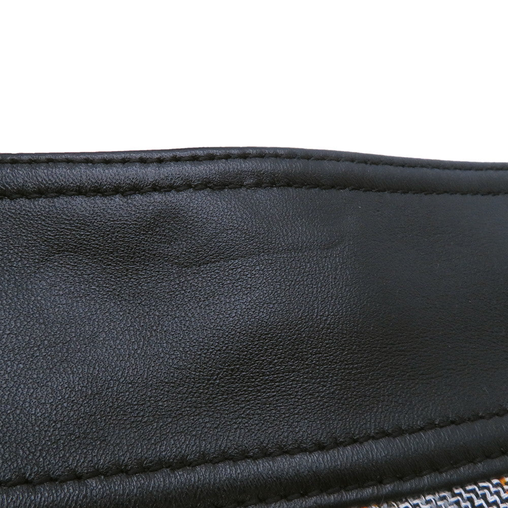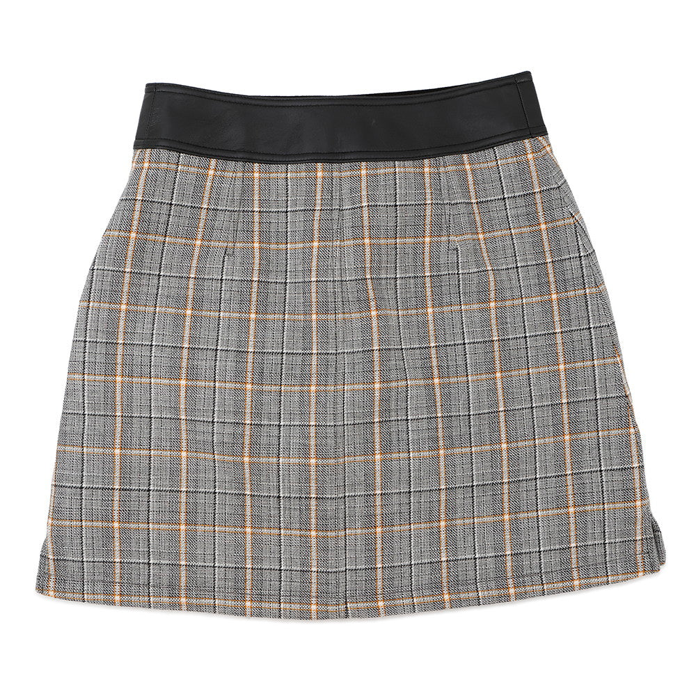 LOUIS VUITTON Leather Trim Check Skirt Size 36 Gray/Black/OrangeRW232W Wool 43% Rayon 23% Cotton23% Linen 8% Nylon 3% Lamb Leather