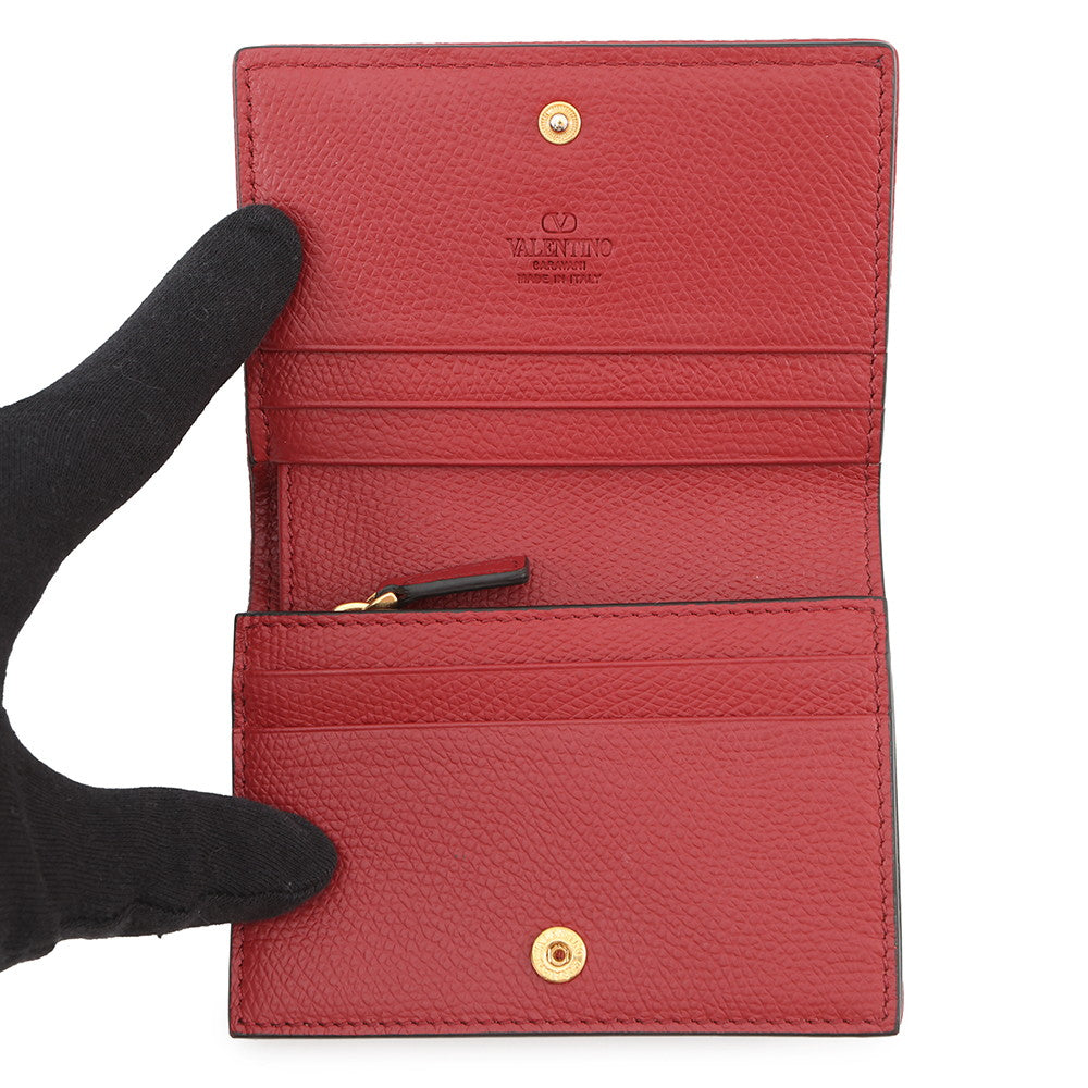 • 将图像加载到图库查看器中,Valentino Garavani V Logo Cherry Fick Embroidery Compact Wallet Blue/Red7W2P0AJ3BRJ Denim/Leather