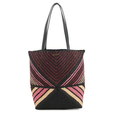 LOEWE Paula Ibiza Puzzle Fold Tote Burgundy/Pink/Beige/BlackA779G50X37 Raffia Leather Size Medium