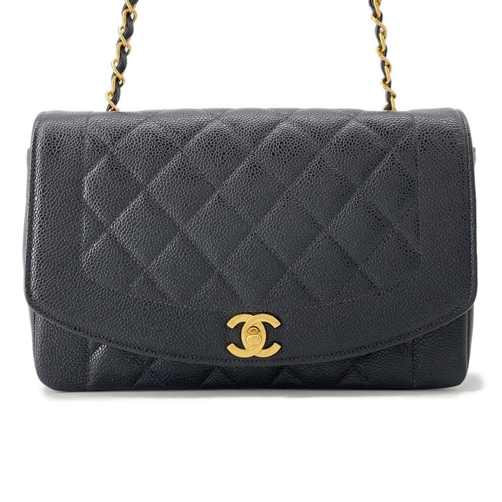 CHANEL Diana Chain Shoulder Bag BlackA01165 Caviar Leather Size 25