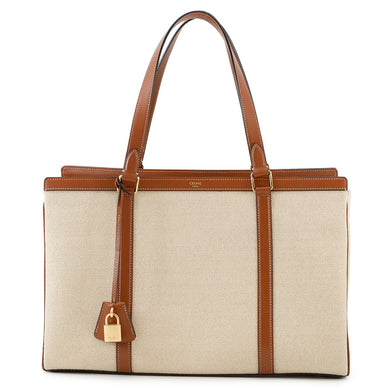CELINE Cabas Tice Tote Bag Ivory/Brown196762 Canvas Leather Size Large供应商 CELINE