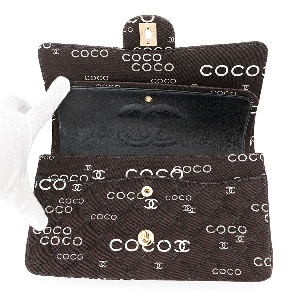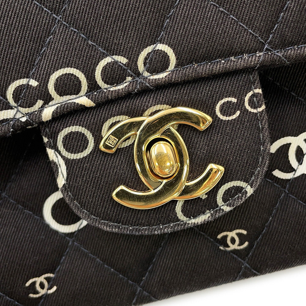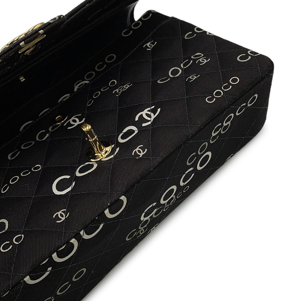 CHANEL Matelasse Double Flap Chain Shoulder COCO Print BlackA01112 Canvas Size 25