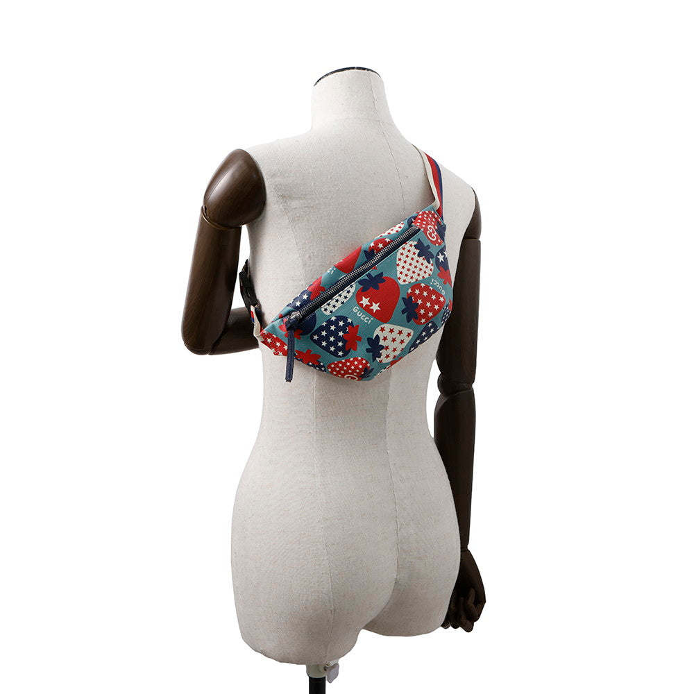 GUCCI Children's Belt Bag Strawberry Blue/Multicolor502095 PVC Leather