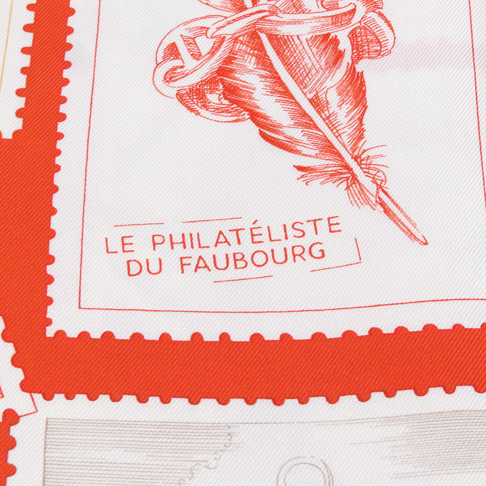 HERMES Carre Fauve stamp enthusiast Size 90 Vermillon/Crème/Lidvan Silk100%