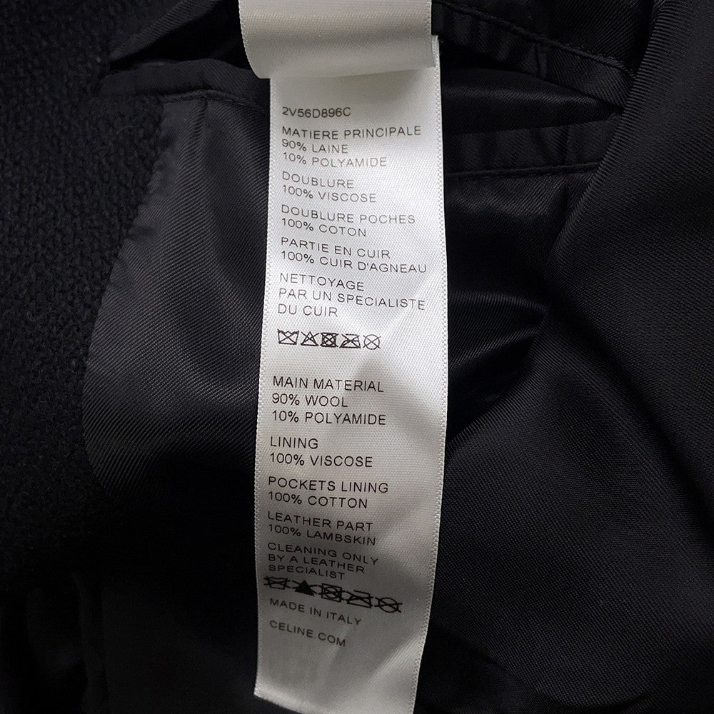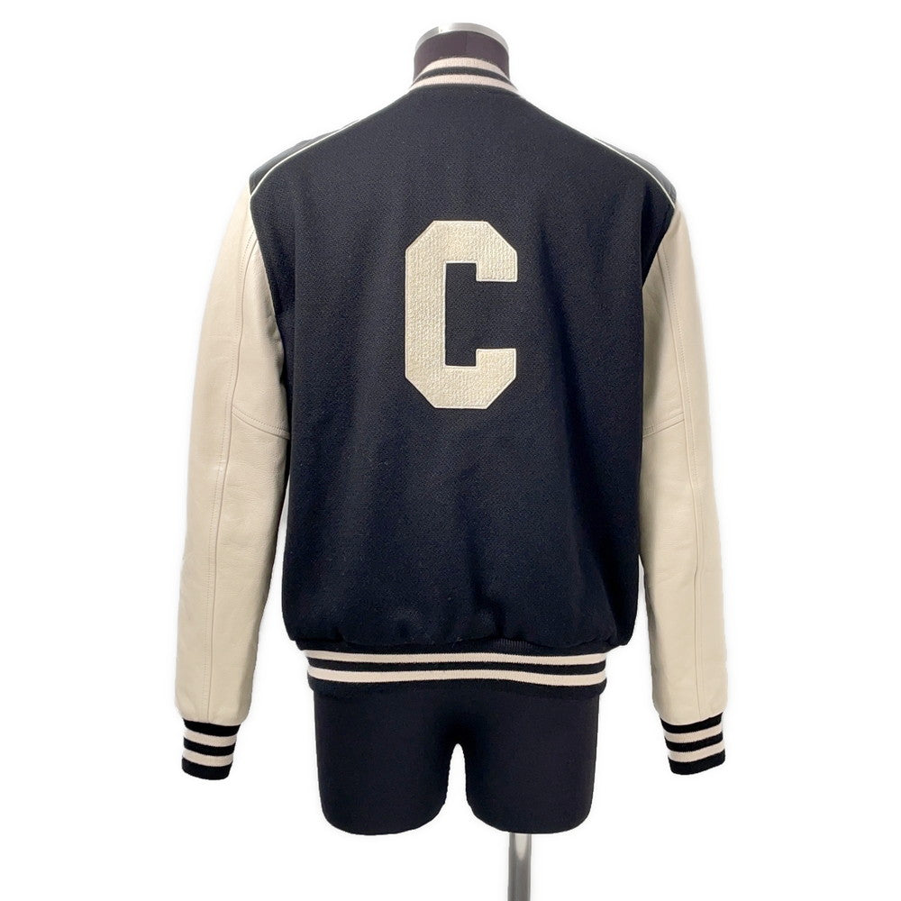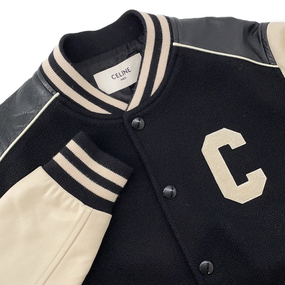 CELINE Leather Stadium Jacket Size 48 Black/White2V56D896C Wool 90% Nylon 10% Leather: Sheep Leather