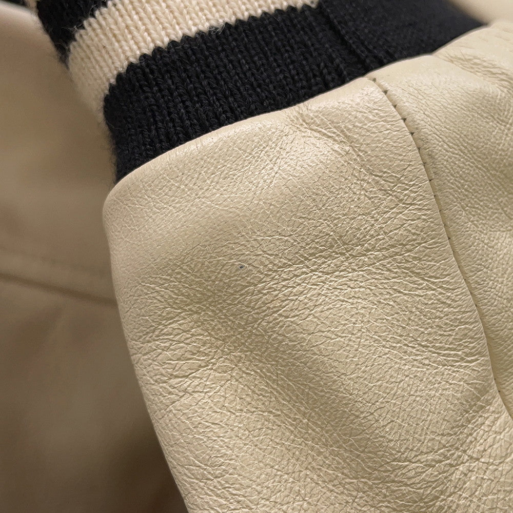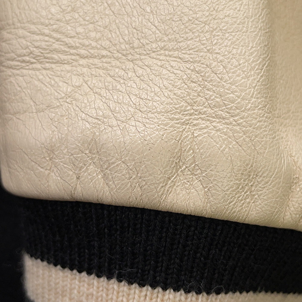 • 将图像加载到图库查看器中,CELINE Leather Stadium Jacket Size 48 Black/White2V56D896C Wool 90% Nylon 10% Leather: Sheep Leather