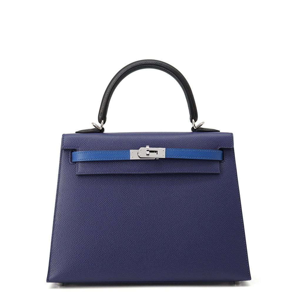 HERMES Kelly Sellier tricolor Blue Saphir/Blue France/Black Epsom Size 25