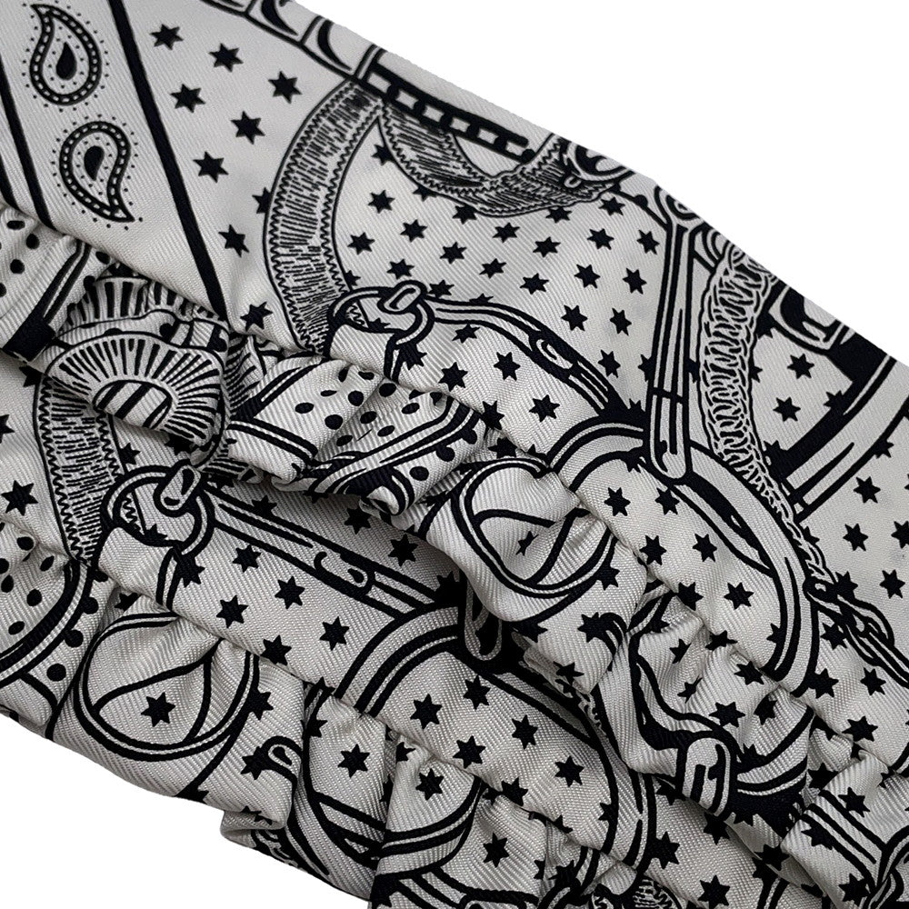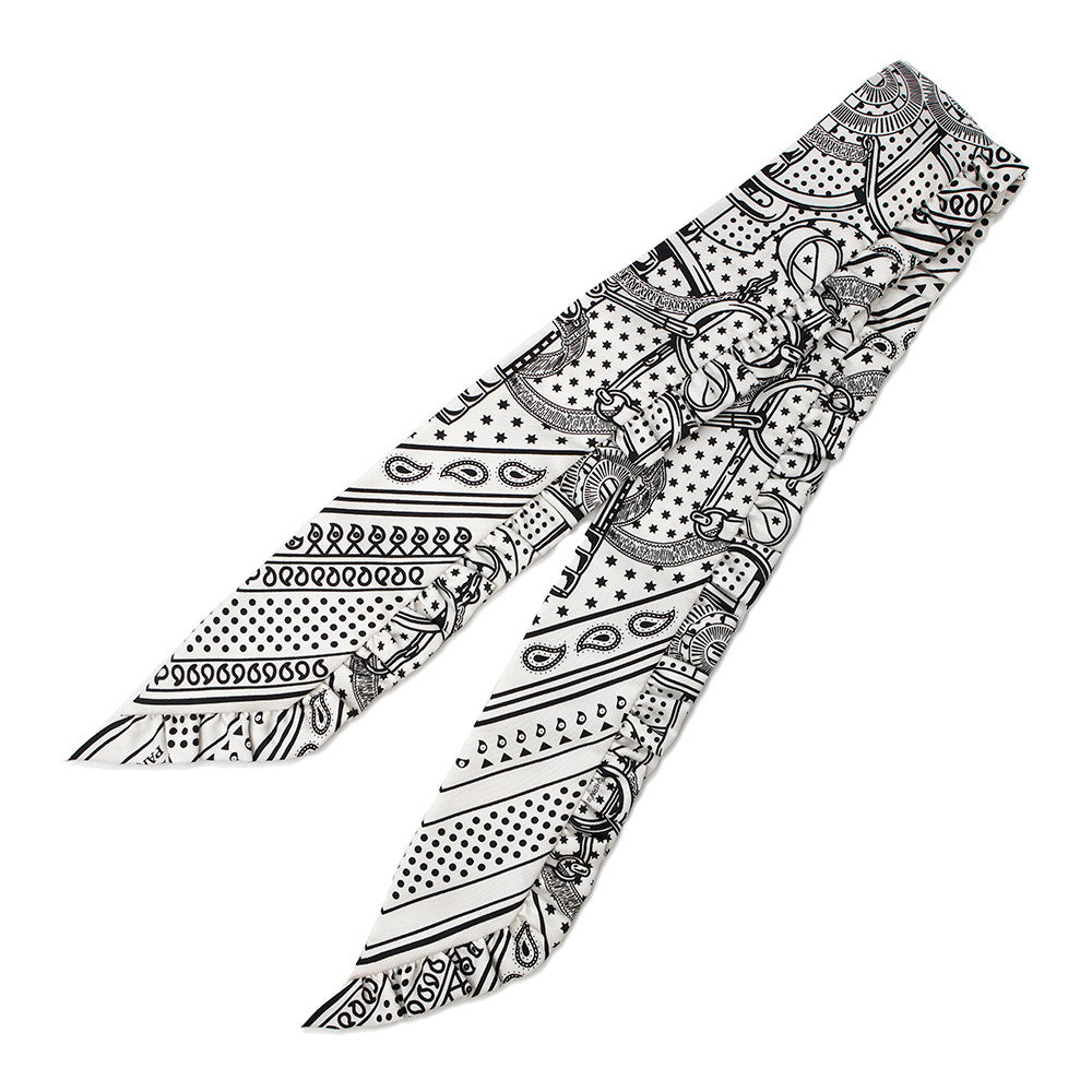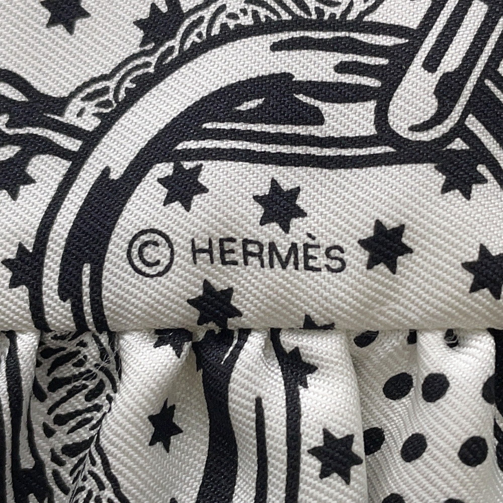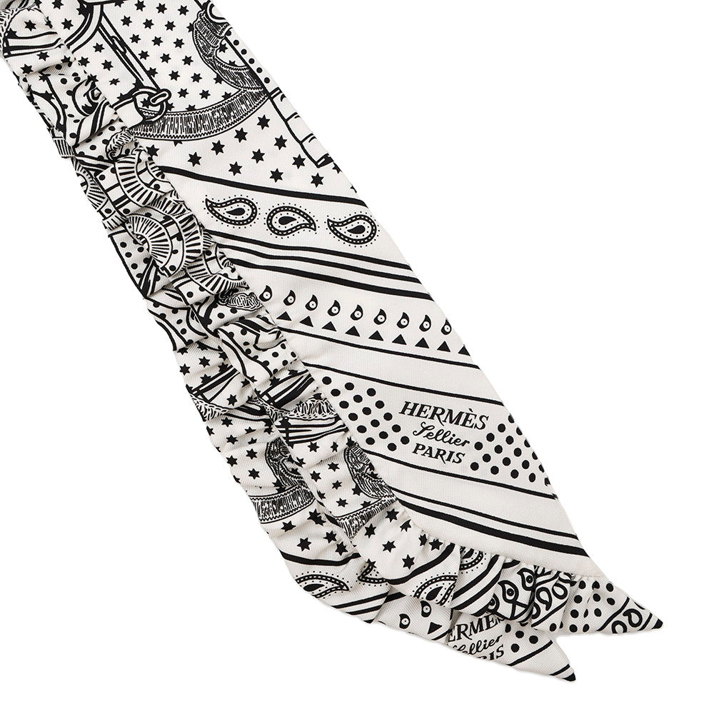 HERMES Twilly Frill Apron Doll Bandana Black/White Silk100%