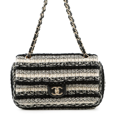 CHANEL Matelasse WChainShoulder Bag White/Black Tweed Leather Size 25