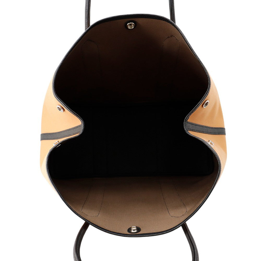 HERMES Garden Party Biscuit/Black Toile H Negonda Leather Size PM