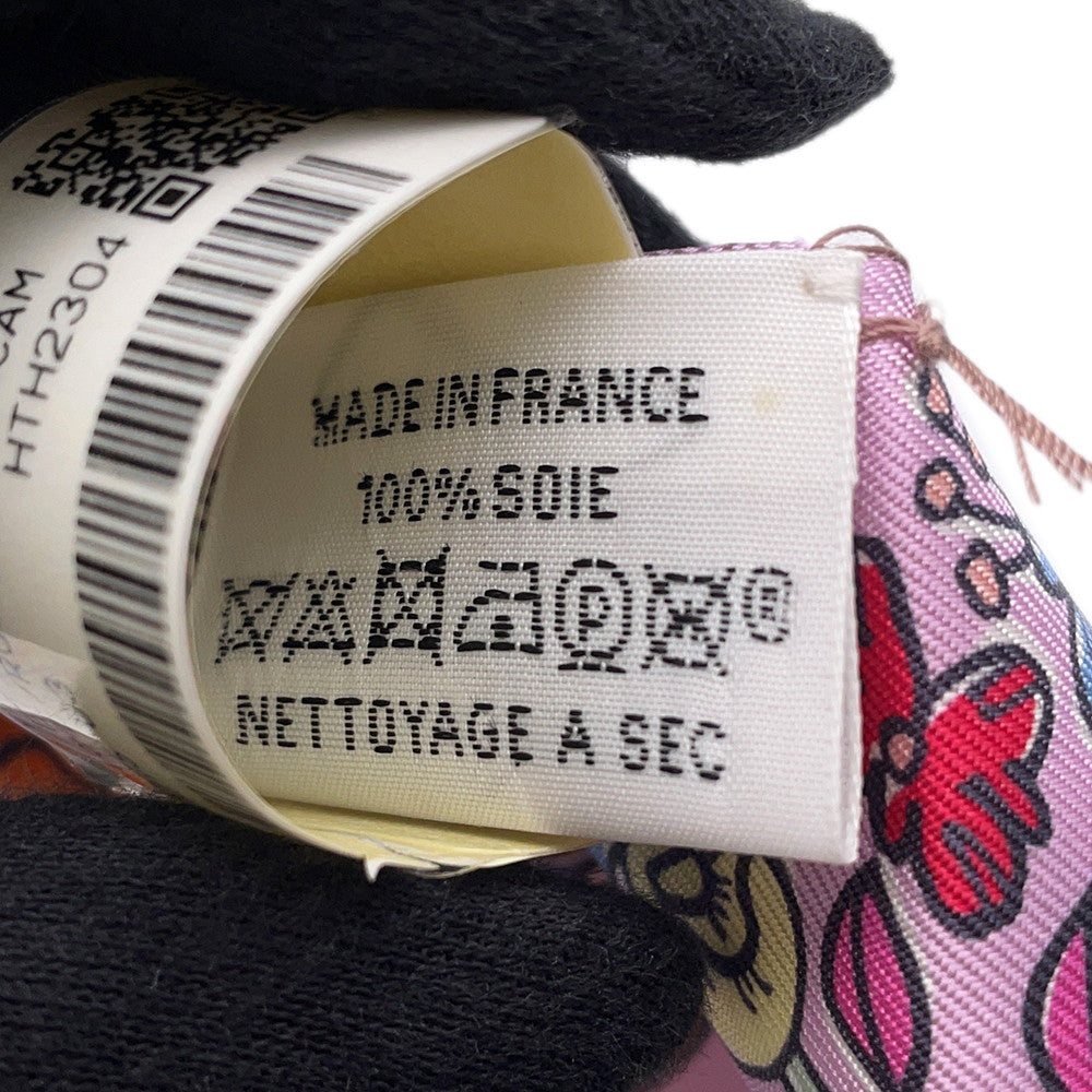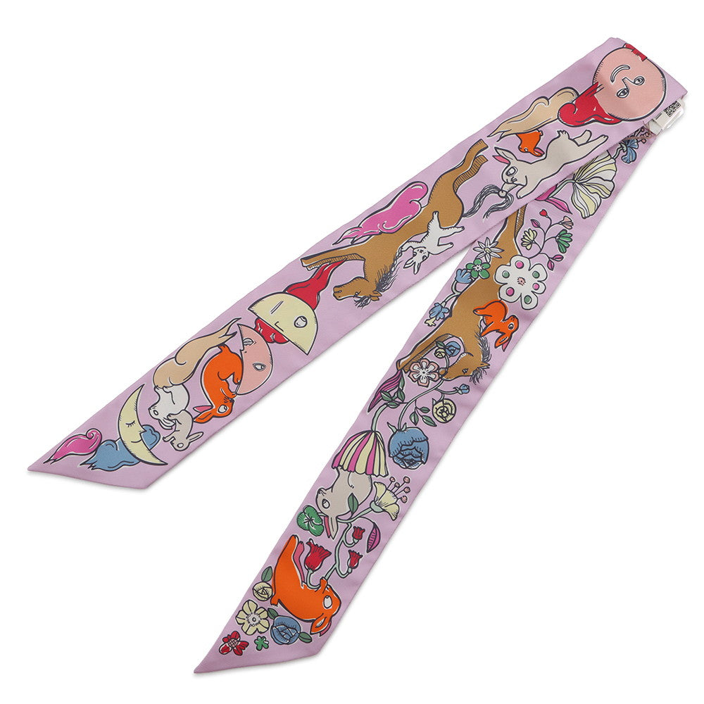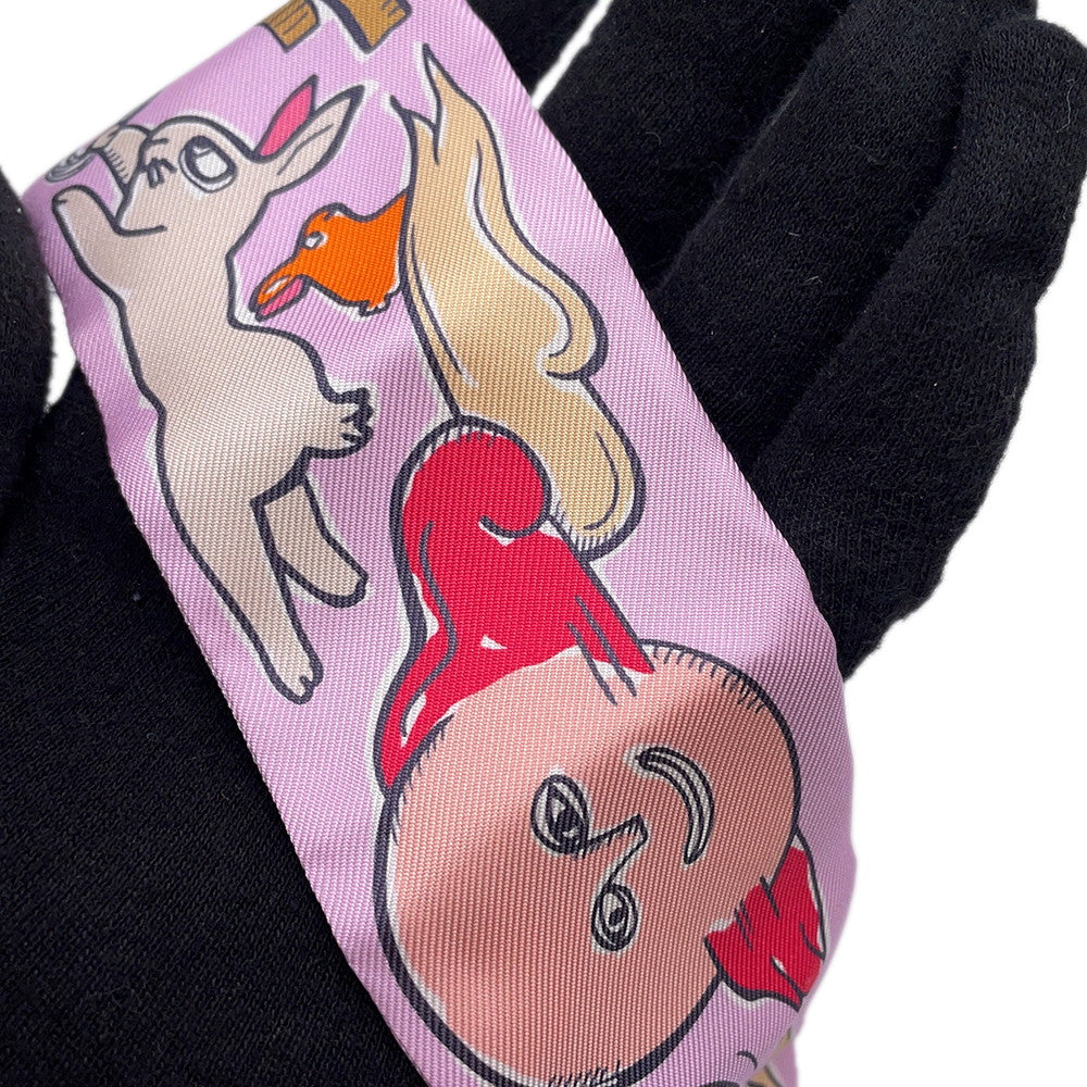HERMES Twilly A Thousand and One Rabbits Mille et Un Lapins Parme/Rose Vif/Camel Silk100%