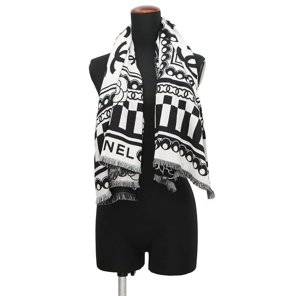 CHANEL CC Logo Stole White/Black Wool 90% Silk10%