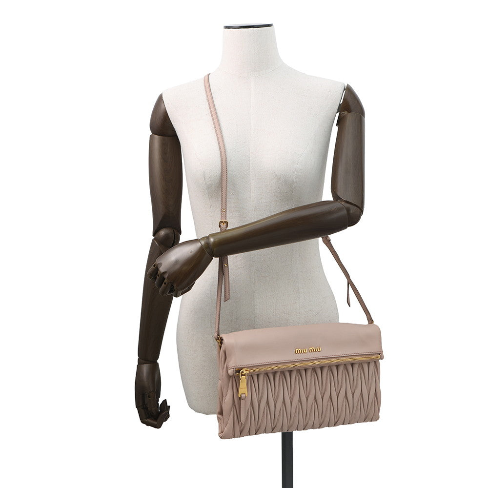 MIUMIU Matelasse Clutch 2WAY Shoulder Bag Jasmin FlowerRP0357 Leather