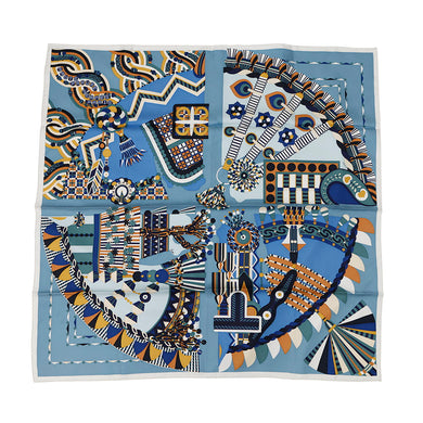 HERMES Carre Haute Parure Size 90 Blue Jean/BeigeDre/Ciel Silk100%供应商 HERMES