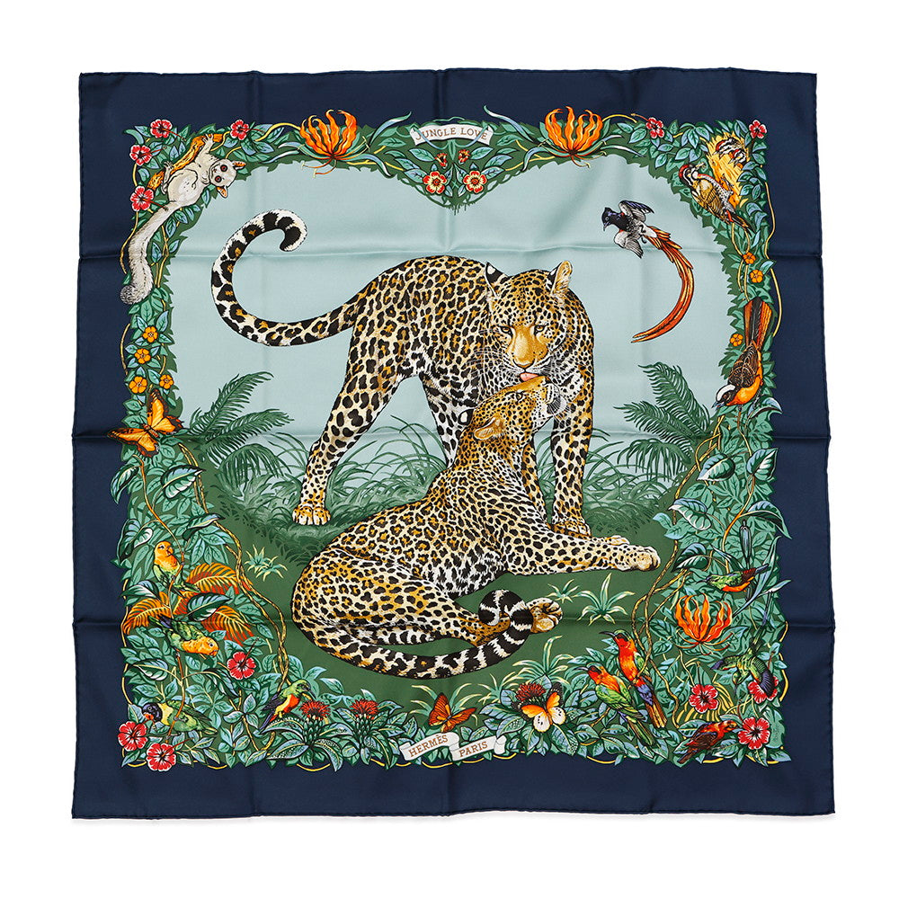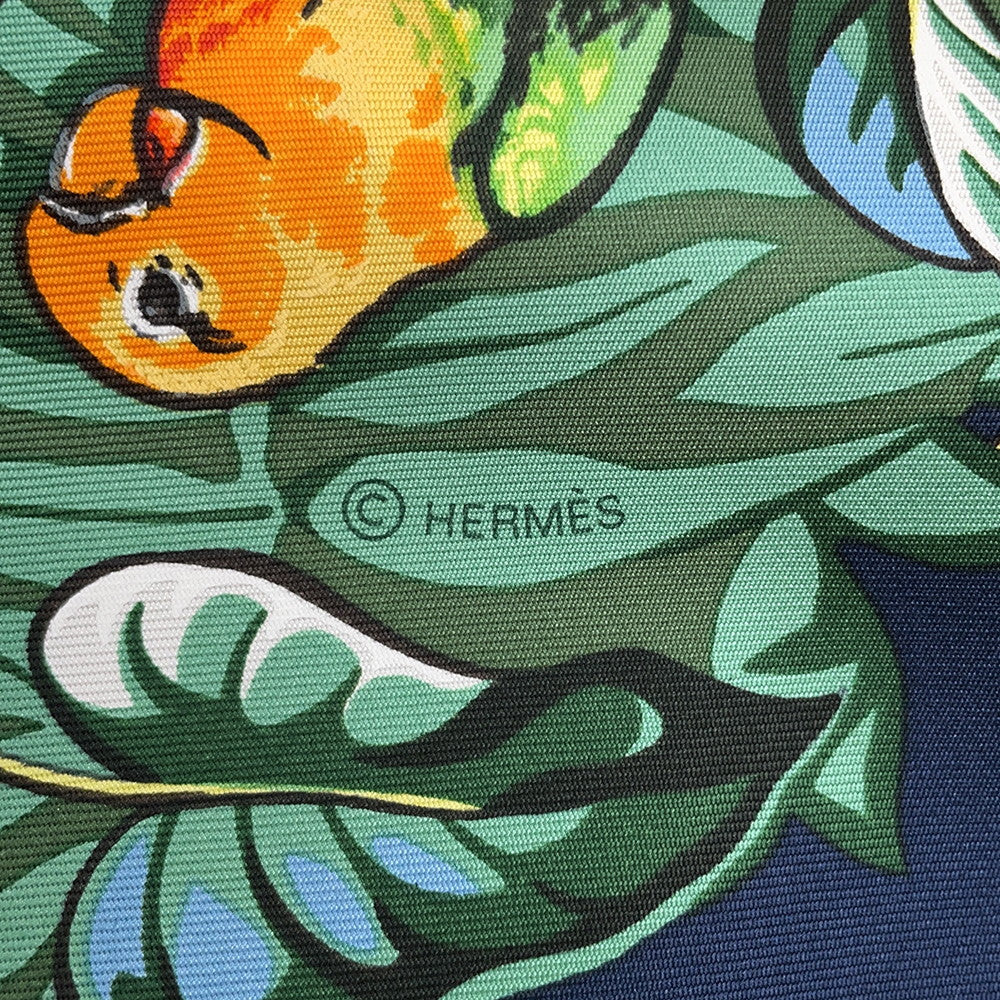 HERMES Carre Jungle Love Size 90 Marine/Vert/Orange Silk100%