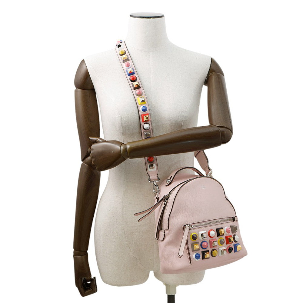 FENDI Bolsa Vitto Dolce Studded Shoulder Bag Pink8BT281 Leather