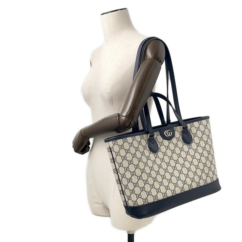 GUCCI Ophidia GG Supreme 2way Tote Bag Beige/Navy765043 PVC Leather Size Small