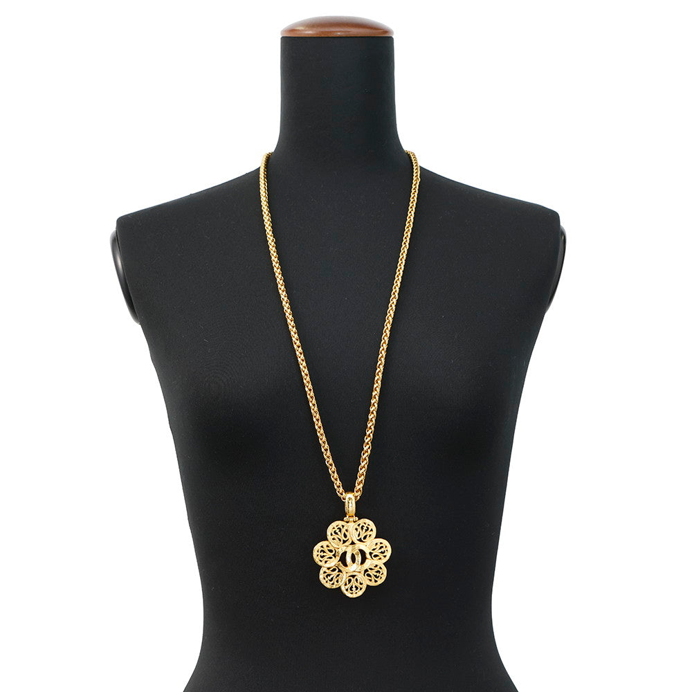 CHANEL CC Logo Flower Motif Necklace Gold Gold Plated