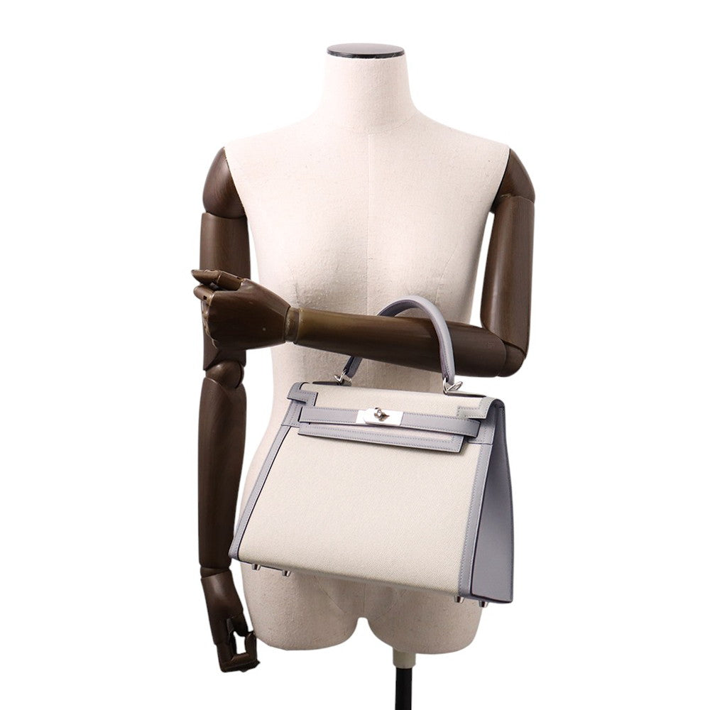HERMES Kelly Sellier Ecru/Blue Gacier Toile H Swift Leather Size 28