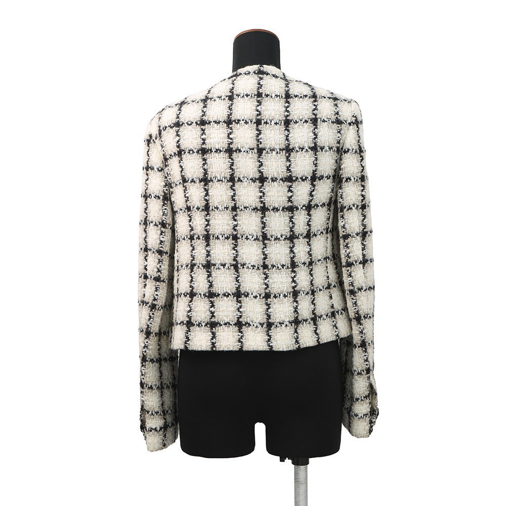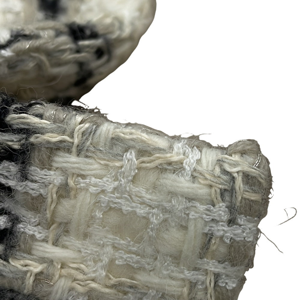 CHANEL Tweed 2-Pocket Collarless Jacket Short Size 38 Ivory/Black/GrayP62411V47773 Wool 38% Acryl23% Polyester18% Linen12% Polyamide7% Alpaca2%